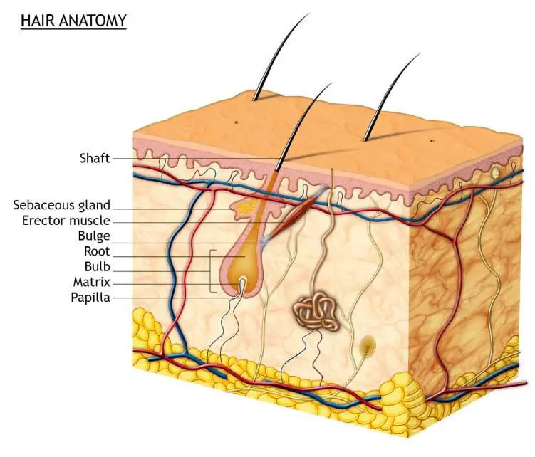 In this bubble the bulb, the base and only living part of the hair, is formed. When it grows, the hair shaft grows out of the skin, and this is the only visible part of the “keratinized” hair. A hair is a kind of shaft, with varying lengths, and it is hard and thick, depending on the area of the body and the person; it is formed in a small bubble under the skin, which is called the “hair follicle”.
