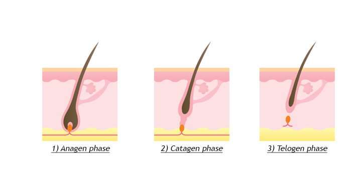 While the length of the hair life cycle is different in each person, its chronological system, which is divided into 3 phrases, is the same for everyone:
