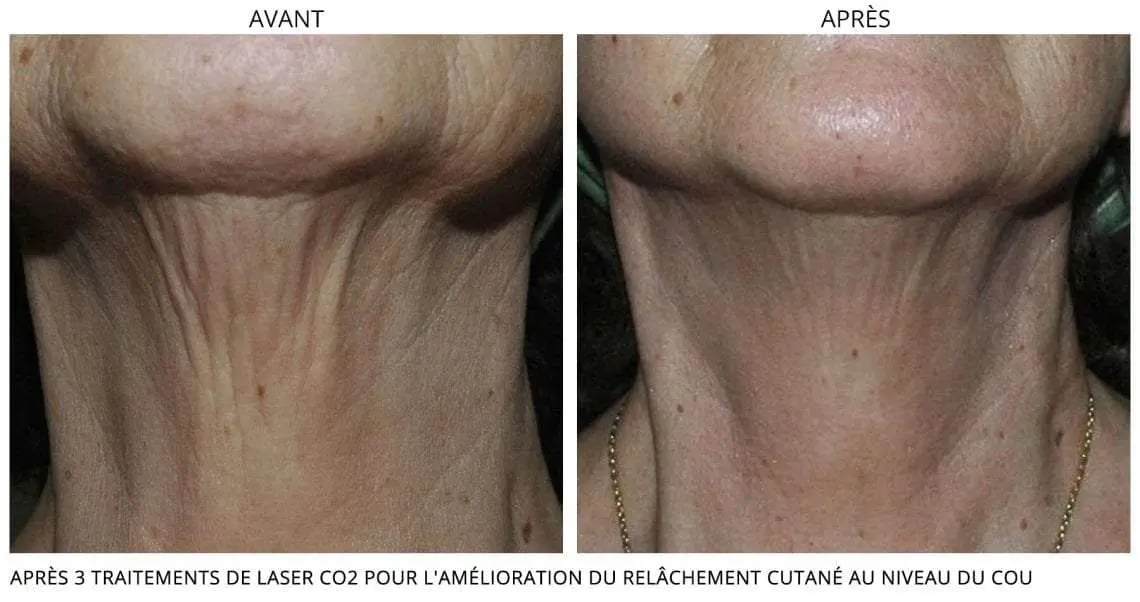 • Le cou (en respectant les précautions rigoureuses des lasers CO2 à ce niveau en raison du risque cicatriciel)